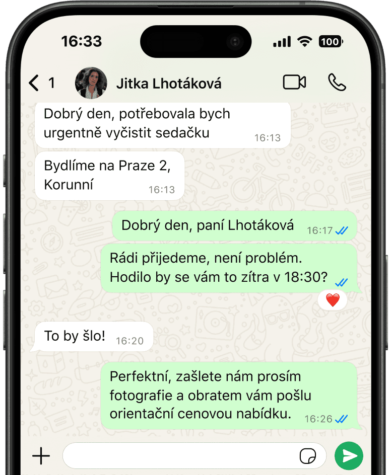 Sedačka je srdcem domova a podle toho k ní přistupujeme. Odstraníme skvrny, mastnotu, zápachy i zašednutí způsobené každodenním používáním. Materiálům rozumíme a víme, jak s nimi pracovat.